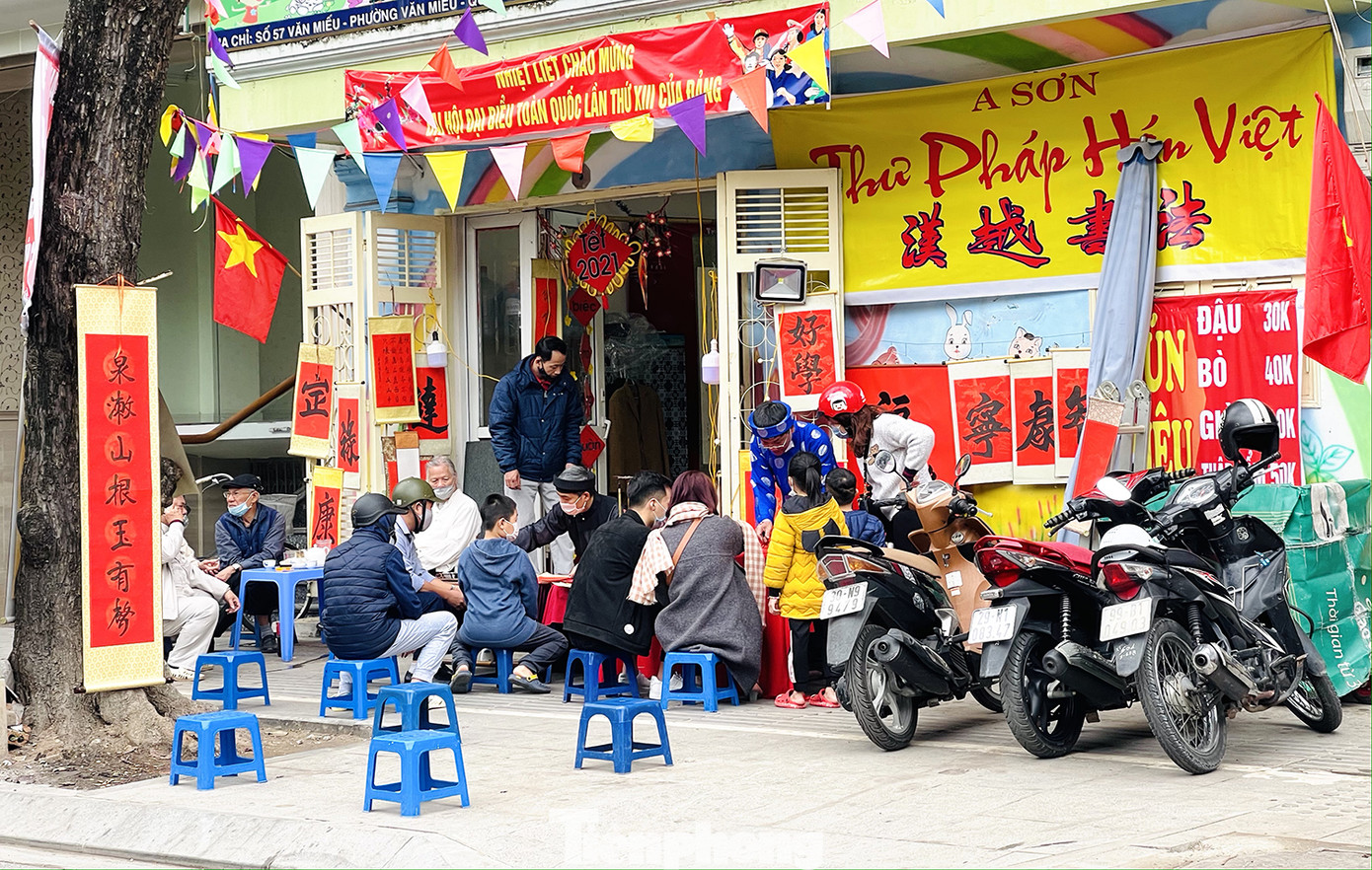 Khu phố Văn Miếu tấp nập người dân đổ đến xin chữ.