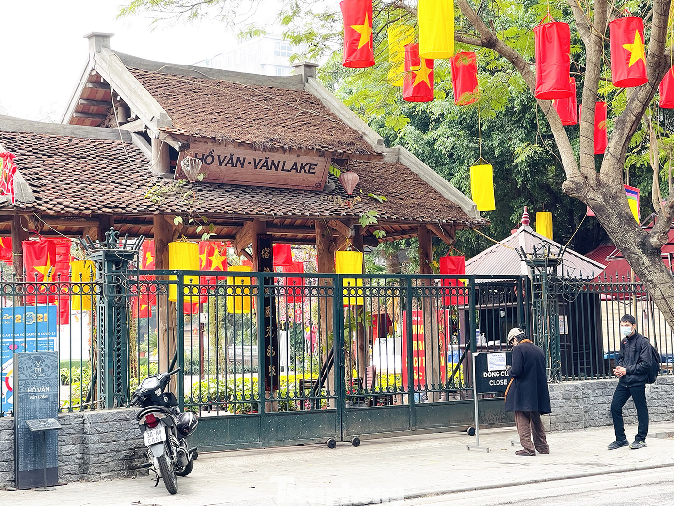 Khu Hồ Văn được trang hoàng lỗng lẫy nhưng cũng đã đóng chặt cửa nhằm thực hiện chỉ thị mới phòng, chống dịch của thành phố Hà Nội.