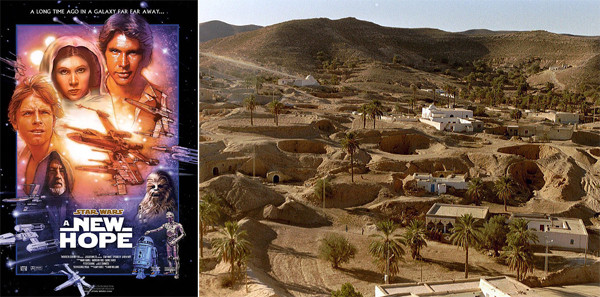Cảnh trong Tatooine, hành tinh quê hương của Luke Skywalker, được quay tại Matmata thuộc sa mạc Sahara của Tunisia. Cái tên Tatouine cũng được lấy cảm hứng từ tên một khu vực gần đó.