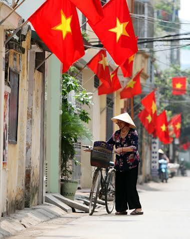 Cờ đỏ sao vàng được treo dọc khắp đường phố.