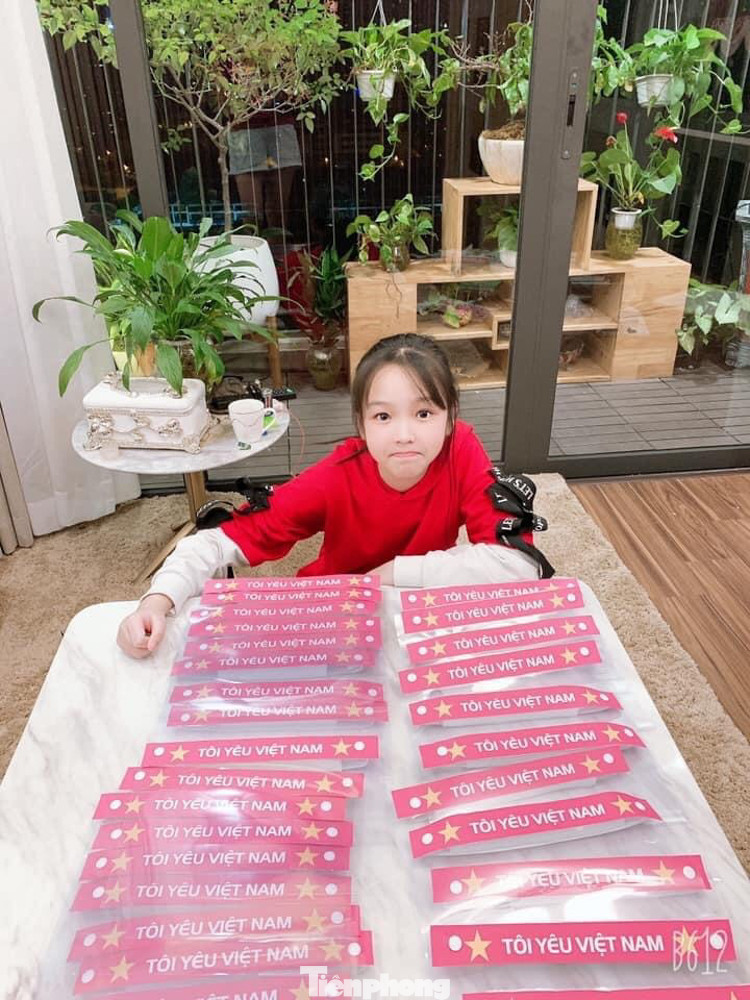 Bạn Phương Anh chia sẻ: “Con rất hào hứng với dự án này, bố mẹ cùng giúp con tỉ mẩn làm từng chi tiết nhỏ của chiếc mũ chống giọt bắn, cả nhà cùng quây quần bên nhau mỗi tối để gửi tặng tới các y, các bác sỹ con thấy vui lắm ạ.”