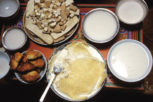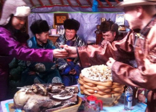 Với người Mông Cổ, cừu là loài vật quan trọng nhất vì đây là nguồn lương thực chính của họ. Vì vậy vào những ngày này mọi người sẽ chúc nhau câu: "Chúc đàn cừu nhà anh ngày càng to béo". Trong bữa cơm mừng năm mới không thể thiếu thịt cừu, thịt bò, thịt ngựa...