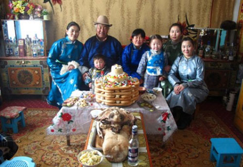 Tết âm lịch tại Mông Cổ được gọi là Tsagaan Sar, kéo dài từ mùng 1 đến mùng 3 âm lịch. Mỗi gia đình phải chuẩn bị hàng trăm chiếc bánh nhân thịt cừu gọi là buuz, một món ăn truyền thống dịp năm mới.