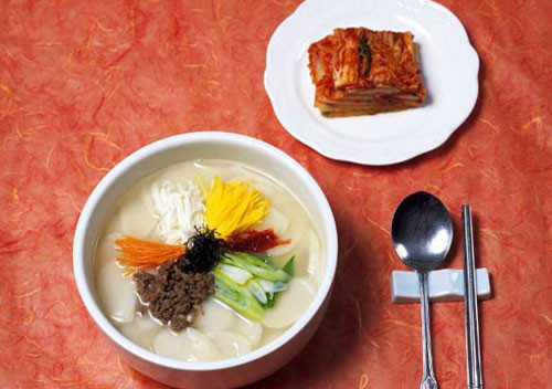 Món canh tteokguk được chế biến đơn giản với nước canh và bánh gạo thái mỏng. Nó là món ăn mang lại may mắn và đánh dấu một năm qua đi với người dân xứ sở kim chi.