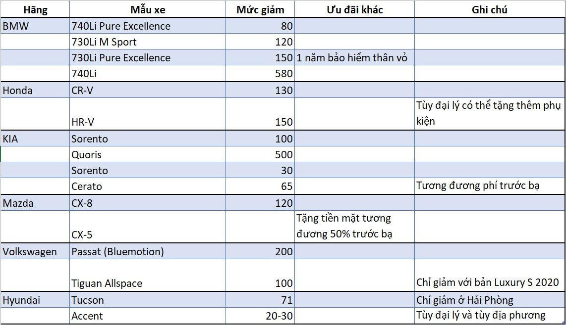 Ở phân khúc giá cao hơn, Volkswagen đang giảm giá tới 200 triệu đồng chi chiếc Passat phiên bản Bluemotion. Với xe Tiguan Allspace, hãng cũng đang cố “dọn kho” một số xe 2020 đang tồn. Cụ thể phiên bản Luxury S sản xuất năm ngoái đang được giảm giá 100 triệu đồng.