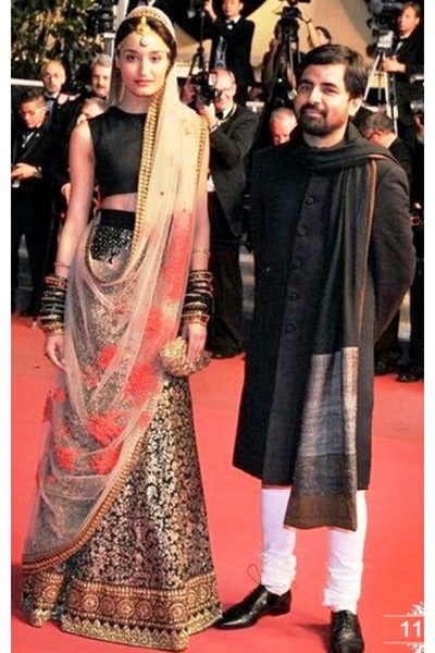 Kanishtha Dhankar - Hoa hậu Ấn Độ 2011 - tới Cannes với trang phục truyền thống, do Sabyasachi Mukherjee thiết kế.