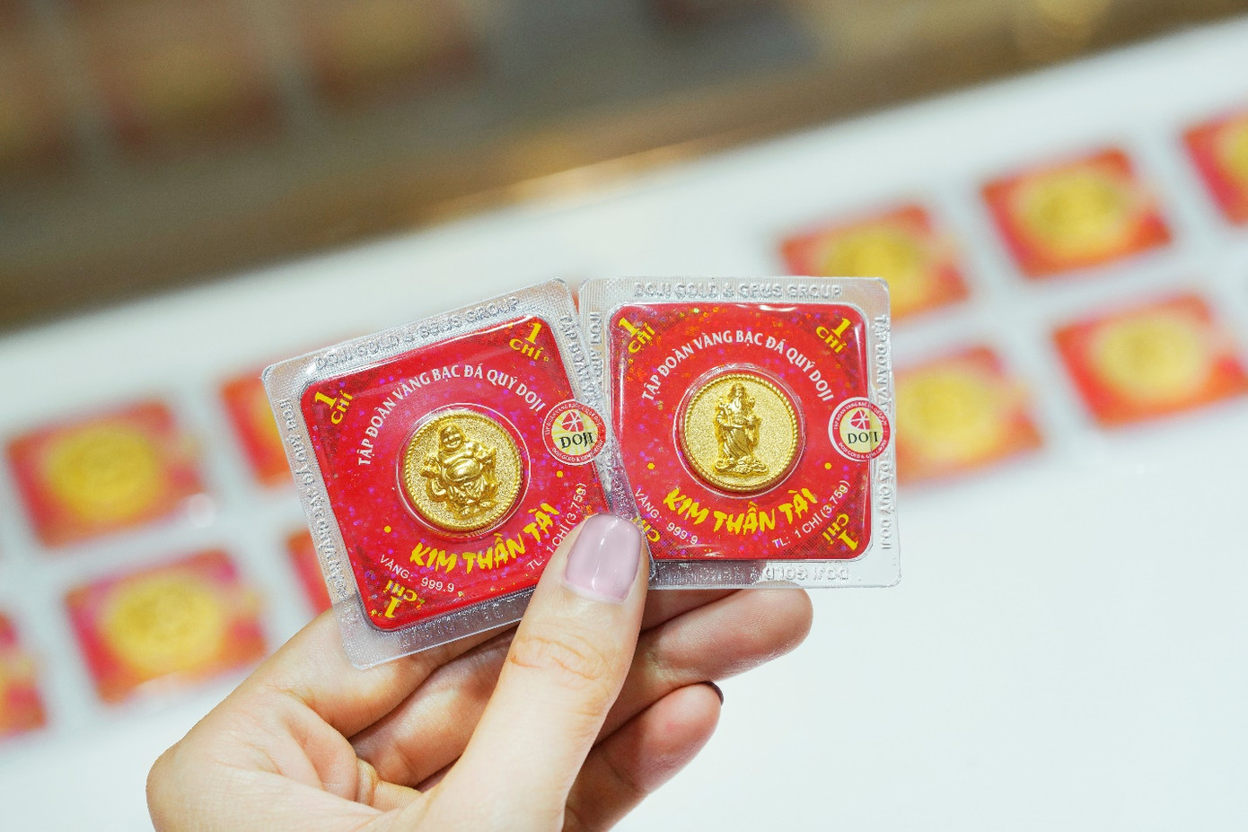 Nổi bật nhất là phiên bản vàng ép vỉ 999.9 độc đáo Kim Mão Chiêu Tài, Kim Mão Phát Lộc mang hình tượng linh vật Mèo Vàng của năm 2023. Sản phẩm được sản xuất với công nghệ ưu việt, đạt tiêu chuẩn quốc tế, đăng ký sở hữu độc quyền của Tập đoàn DOJI. Sản phẩm được mua/bán theo giá vàng miếng SJC và có thể đổi ngang giá với vàng miếng SJC (không tính công chế tác), trọng lượng đa dạng: 1 chỉ, 2 chỉ, 5 chỉ… đáp ứng linh hoạt khả năng tài chính của từng khách hàng.