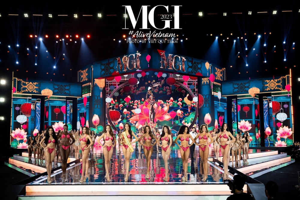 Top 10 Miss Grand International 2023 trong trang phục bikini. Hoa hậu Lê Hoàng Phương xuất sắc lọt Top 10.