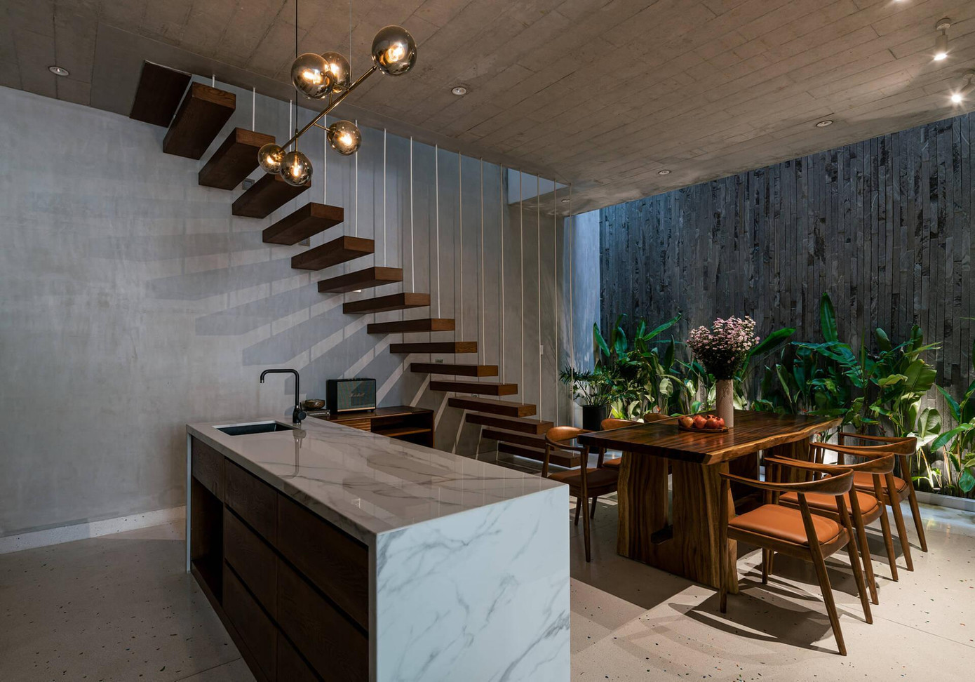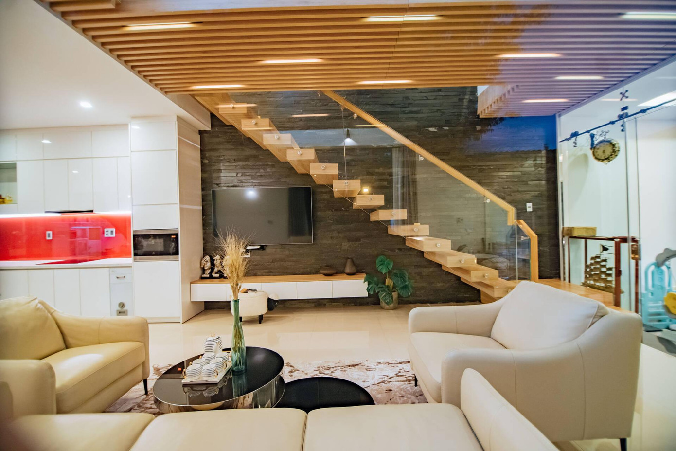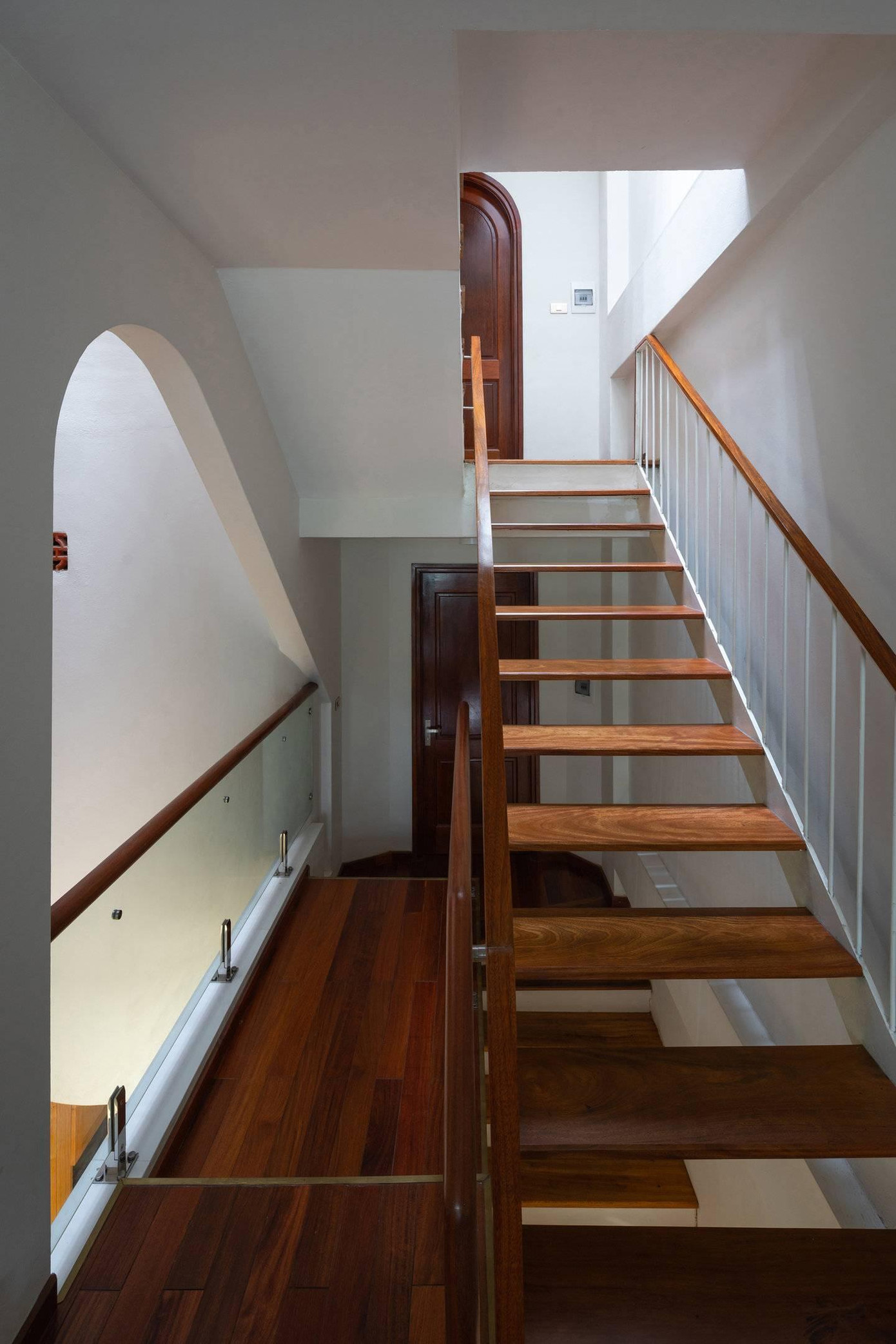 Cầu thang kết hợp kính và gỗ, phong cách hiện đại