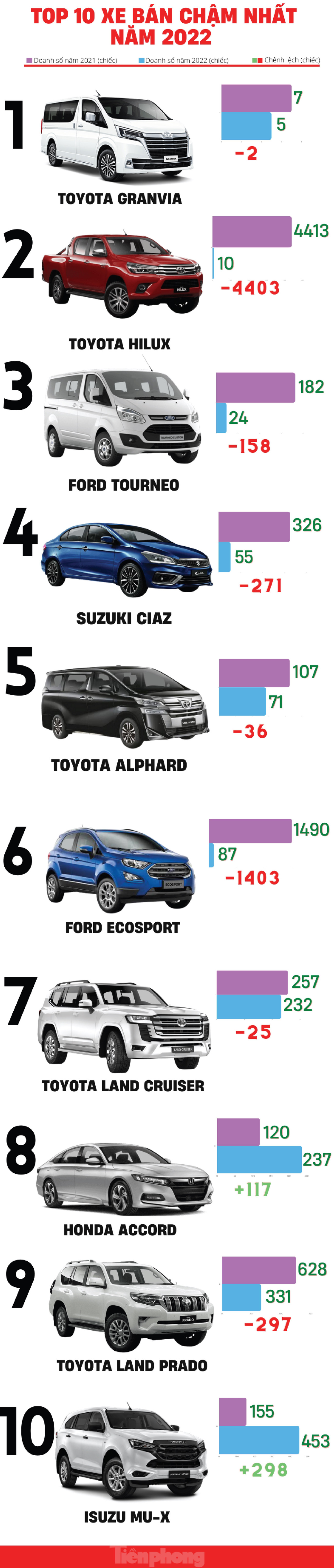 Các mẫu ô tô có doanh số thấp nhất tại Việt Nam trong năm 2022
