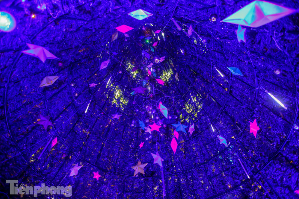 Bên trong cây thông cao khoảng 6m được trang trí những ngôi sao lấp lánh.