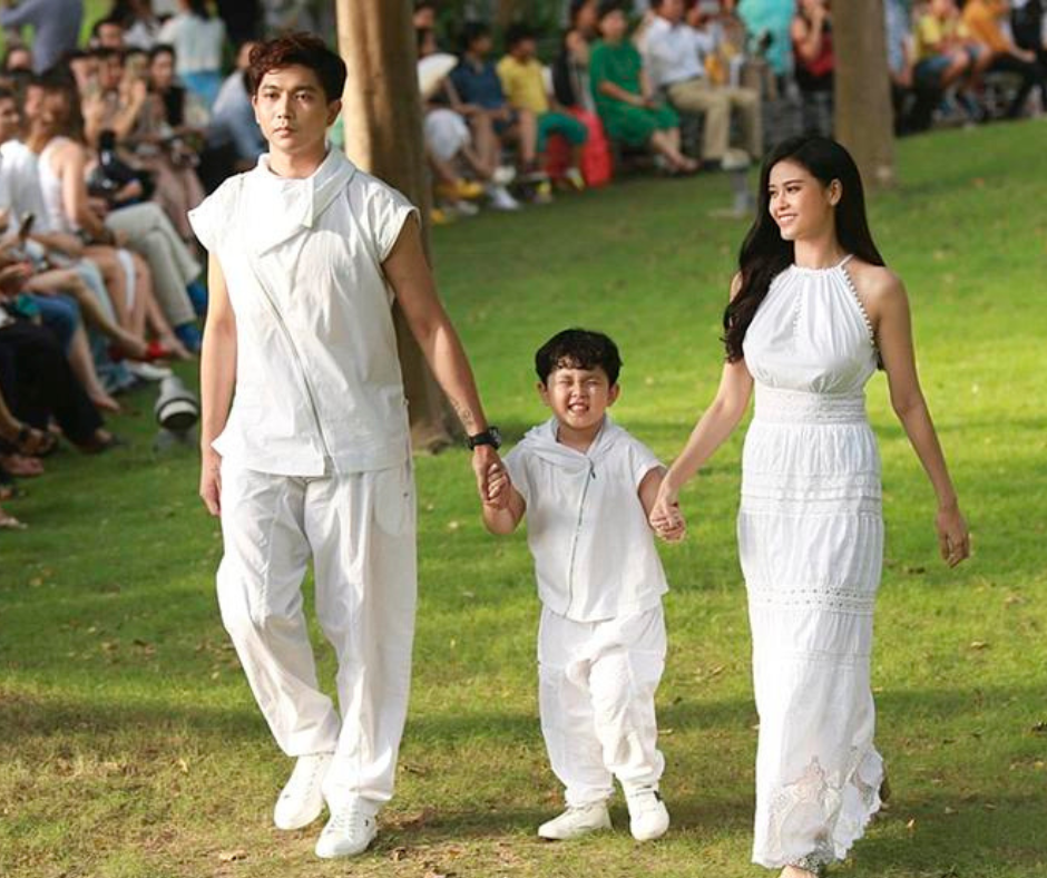 | Sushi - con trai Trương Quỳnh Anh từng catwalk tại Tuần lễ Thời trang cùng bố mẹ. |