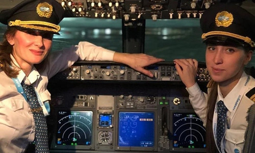 Tổ lái toàn nữ của hãng hàng không Nga Pobeda (có nghĩa là “Chiến thắng”) cho chuyến bay Moscow-Istanbul.