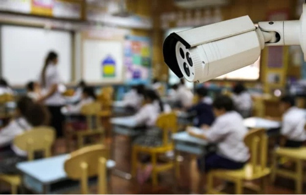 Những vụ xả súng trong khuôn viên trường học Mỹ thời gian qua làm dấy lên nhu cầu sử dụng camera để giảm thiểu hành vi bạo lực. Hiện tùy thuộc vào chính sách của từng trường, camera an ninh được lắp đặt tại hành lang, bãi đậu xe, phòng tập thể dục và trong lớp học. Trừ khi trường học có quy định riêng chống lại việc lắp đặt camera, về mặt pháp lý, việc cài đặt chúng là hợp pháp.