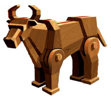 Ngựa gỗ có cơ cấu máy móc ở bên trong, ngựa gỗ tự đi khoảng 10km mà không cần lực đẩy, cứ hết 10 km lại cài lại cơ cấu bên trong để chạy tiếp.