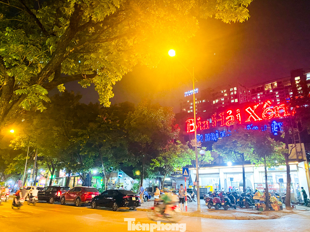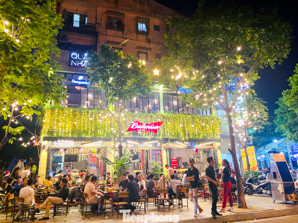 Quán bia trên trục đường Nguyễn Khánh Toàn, khách ngồi tràn ra cả vỉa hè.