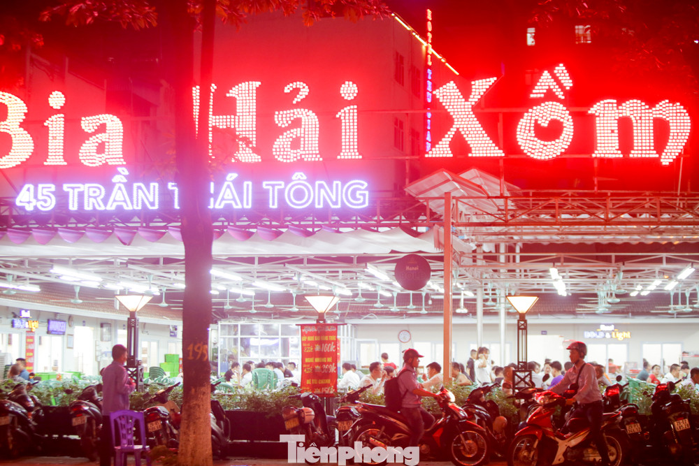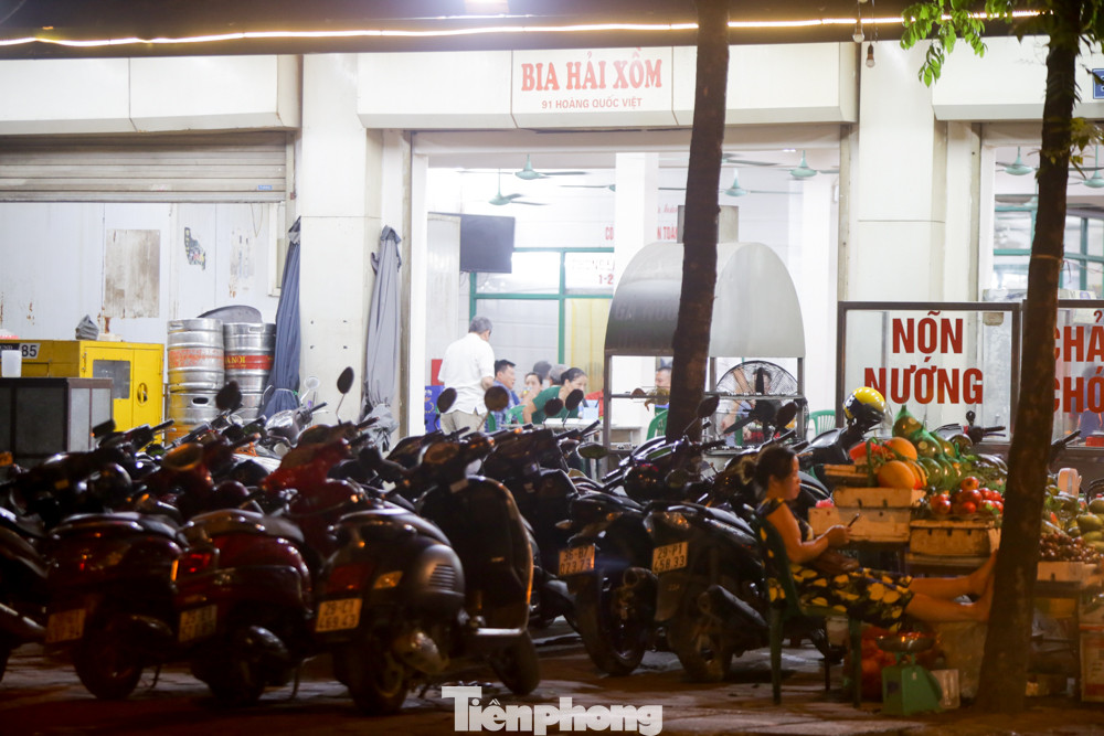 Ghi nhận lúc 20h ngày 18/5, hàng dài xe ô tô và xe máy xếp chật cứng trước cửa quán bia Hải Xồm tại phố Hoàng Quốc Việt.