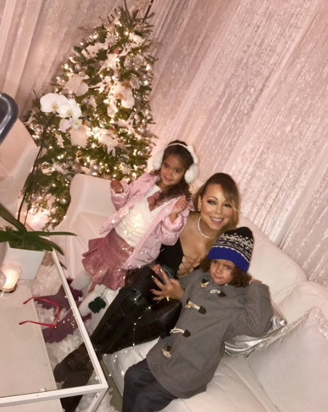 Mariah Carey mặc gợi cảm tạo dáng bên cây thông khổng lồ.