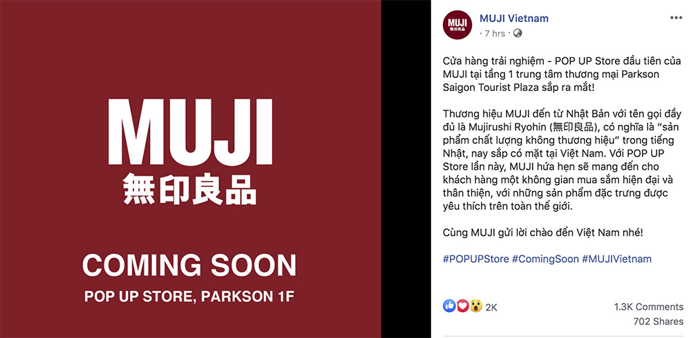Cửa hàng trải nghiệm - Pop Up Store đầu tiên của MUJI được hứa hẹn sẽ mang đến một không gian mua sắm hiện đại và thân thiện, với những sản phẩm đặc trưng được yêu thích trên toàn thế giới. MUJI cũng không quên gửi lời chào đầu tiên tới khách hàng Việt Nam, khiến cho rất nhiều người tiêu dùng vô cùng phấn khích và hào hứng.