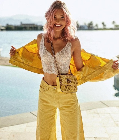 Nàng mẫu Romee Strijd cũng diện bra ren quyến rũ.