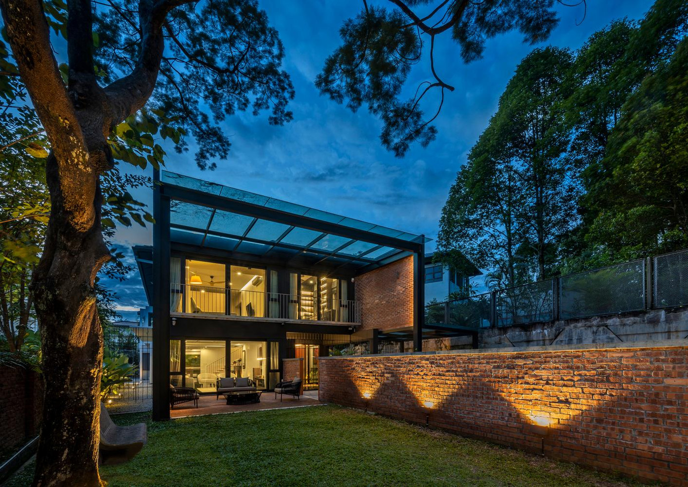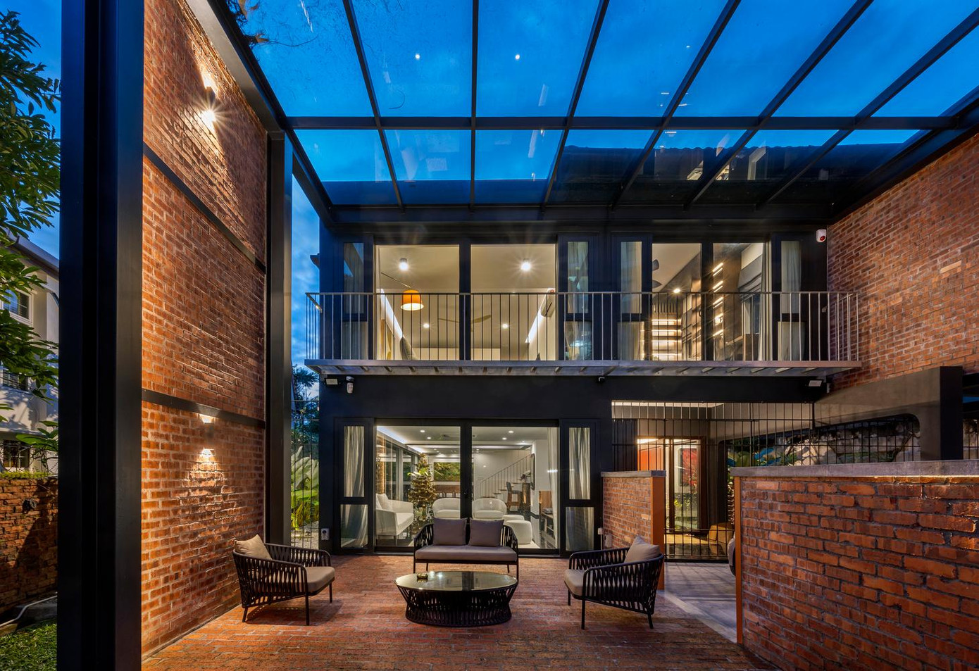 | Để mở rộng tầm nhìn từ trong nhà ra bên ngoài, phần phía trước của ngôi nhà được mở rộng ra với các phần thép mới, gạch thô và kính. |