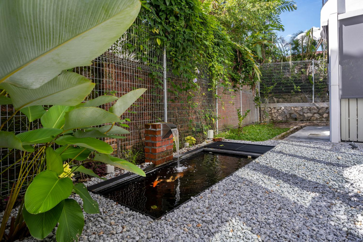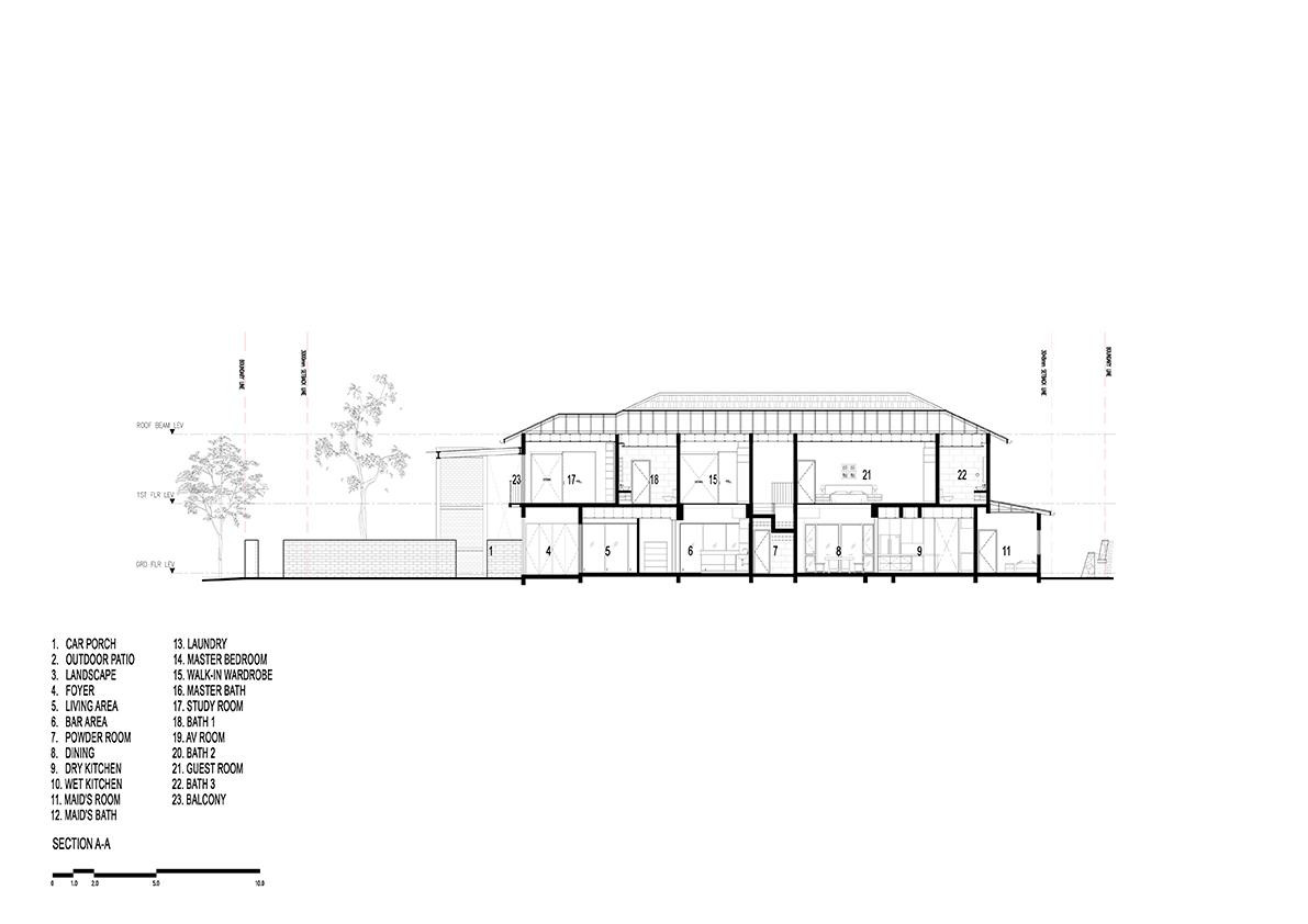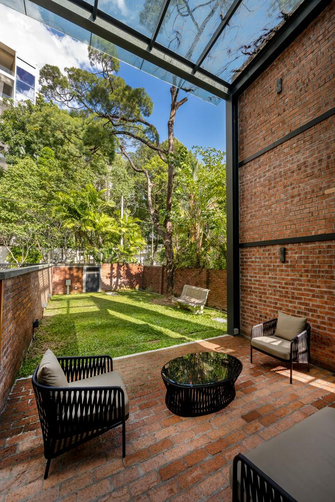 | Một bên hông của ngôi nhà có tường chắn cao 6m giúp mang lại sự riêng tư tốt cho người ở và có thể tạo ra một khu vườn đầy màu sắc, hòa nhập vào không gian sống bên trong nhà. |