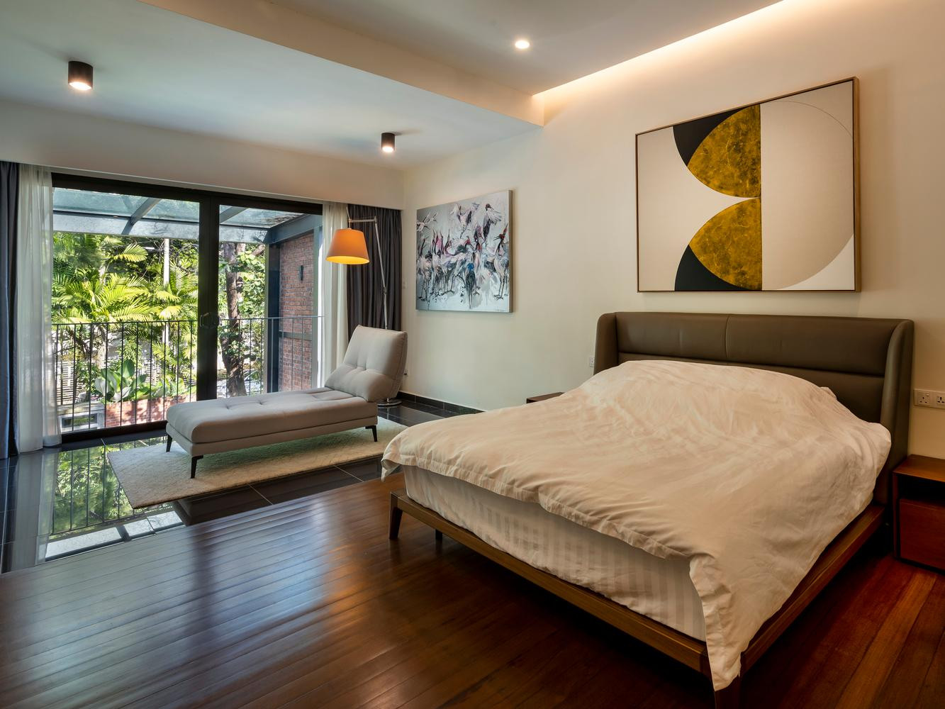 | Tầng trên của ngôi nhà được thiết kế lại để chứa phòng ngủ chính mới, không gian học tập, giải trí và phòng cho con của gia chủ trong tương lai. |