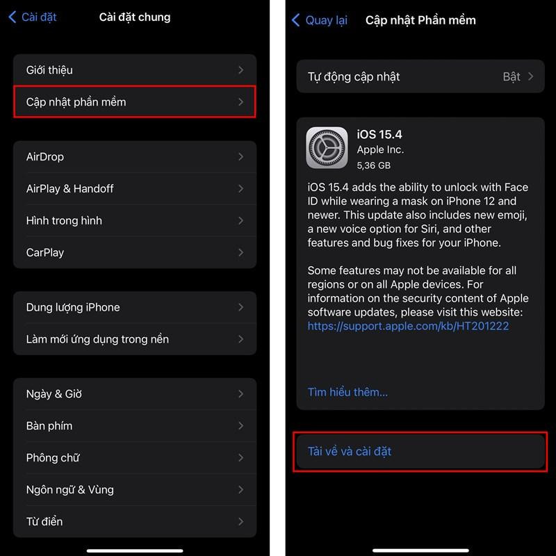 Bước 4: Giờ thì bạn vào Cài đặt > Cài đặt chung > Cập nhật phần mềm > Tải về và cài đặt iOS 15.4 RC nhé.