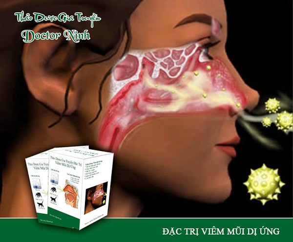 Thảo dược gia truyền Doctor Ninh đặc trị viêm mũi dị ứng. Doctor Ninh làm tiêu tan và chấm dứt các triệu chứng khó chịu của viêm mũi dị ứng như : Chảy nước mũi và nghẹt mũi - Chảy nước hoặc ngứa mắt - Hắt hơi - Ho - Ngứa mũi vòm miệng hay cổ họng - Áp lực đau xoang mặt - Sưng có màu xanh da dưới mắt - Giảm cảm giác về mùi hoặc vị.