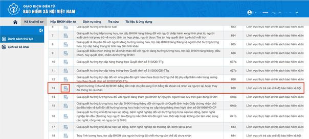 Bạn tìm và chọn tên dịch vụ công “Người hưởng lĩnh chế độ BHXH bằng tiền mặt chuyển sang lĩnh bằng tài khoản cá nhân và ngược lại, hoặc thay đổi thông tin cá nhân”, sau đó click vào hình ảnh tờ khai bên cạnh để kê khai thông tin.