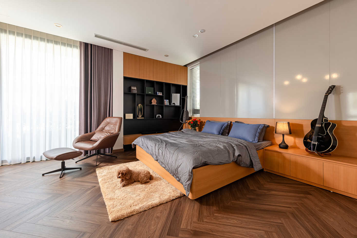 Phòng ngủ master được đưa lên tầng cao nhất để có sự riêng tư và tận hưởng tầm nhìn tốt.