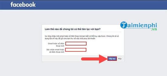 Bước 5: Nếu như hệ thống Facebook yêu cầu bạn nhập địa chỉ Email mới hoặc số điện thoại mới, như vậy thủ tục lấy lại Facebook bị hack pass và mất email đăng ký đã thành công và bạn điền vào.