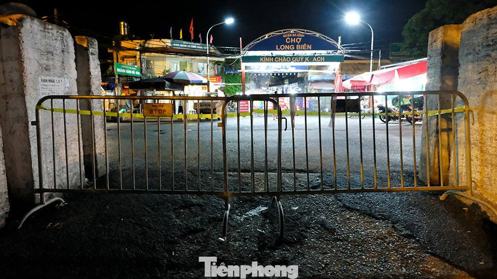 Chợ Long Biên có 3 khu hàng hóa chính là tôm cá (hải sản), rau củ và hoa quả. Sau khi cổng chính bị rào chắn, toàn bộ những khu hàng còn lại cũng vắng tanh, không còn cảnh người mua kẻ bán tấp nập như mọi tối.