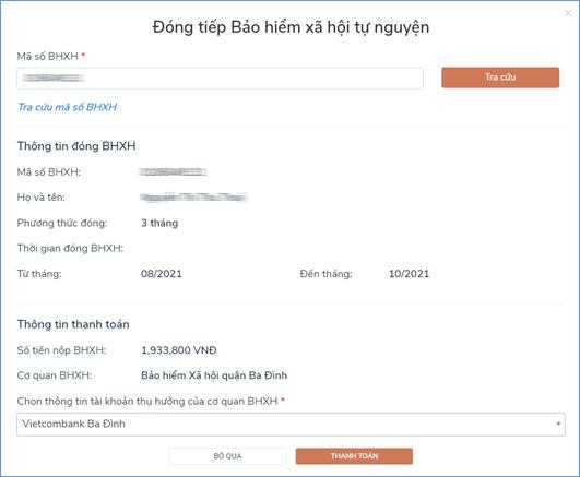 Với dịch vụ thanh toán trực tuyến này, người dân có thể thanh toán đóng tiếp BHXH tự nguyện cho mình hoặc cho người thân.