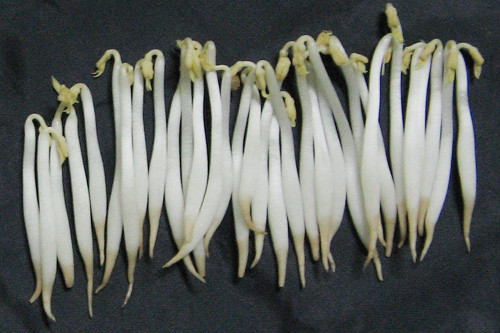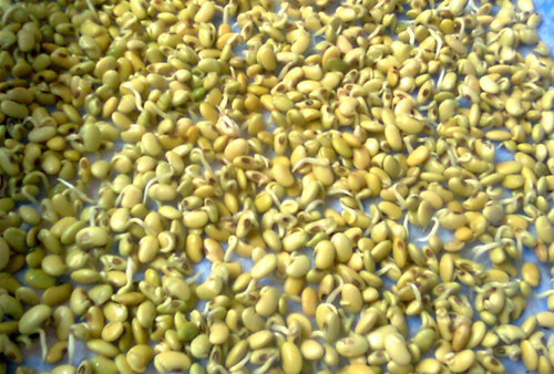 Giá đỗ khi ủ theo cách thông thường bằng cách ngâm nước trông giá sẽ chặt hơn, rễ dài như sợi chỉ, không bóng, không to, không mập, có rễ, thân, lá mầm.