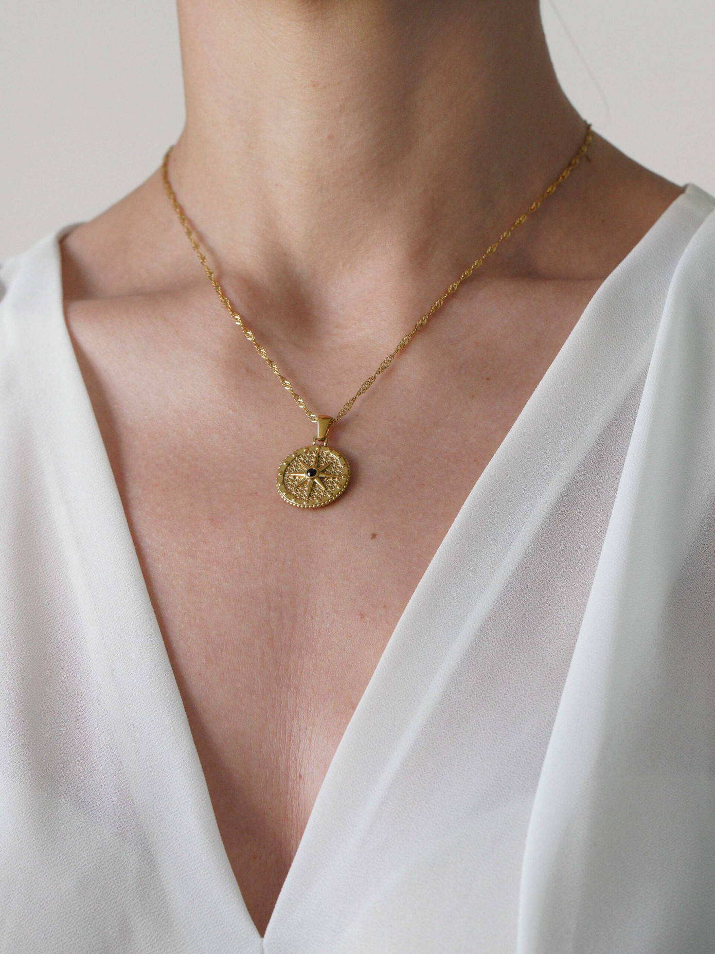 Còn nếu bạn muốn có vẻ ngoài thanh lịch và tối giản, hãy chọn một chiếc vòng cổ có mặt dây chuyền vừa phải, chất liệu kim loại vàng hoặc bạc đều hoàn hảo. Có thể phối thêm ngọc trai nếu bạn không muốn trông quá đơn điệu, nhưng vẫn nhẹ nhàng, tinh tế.