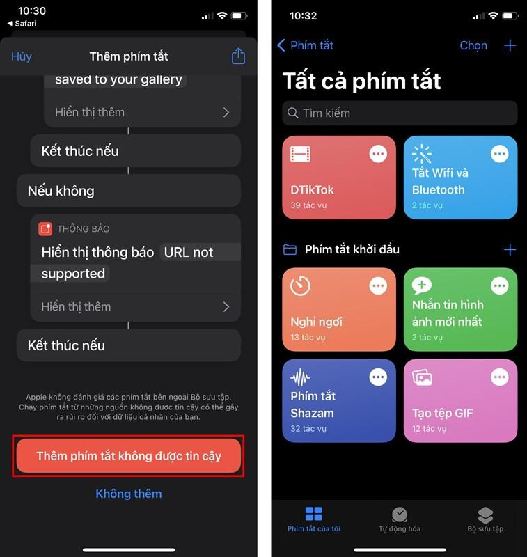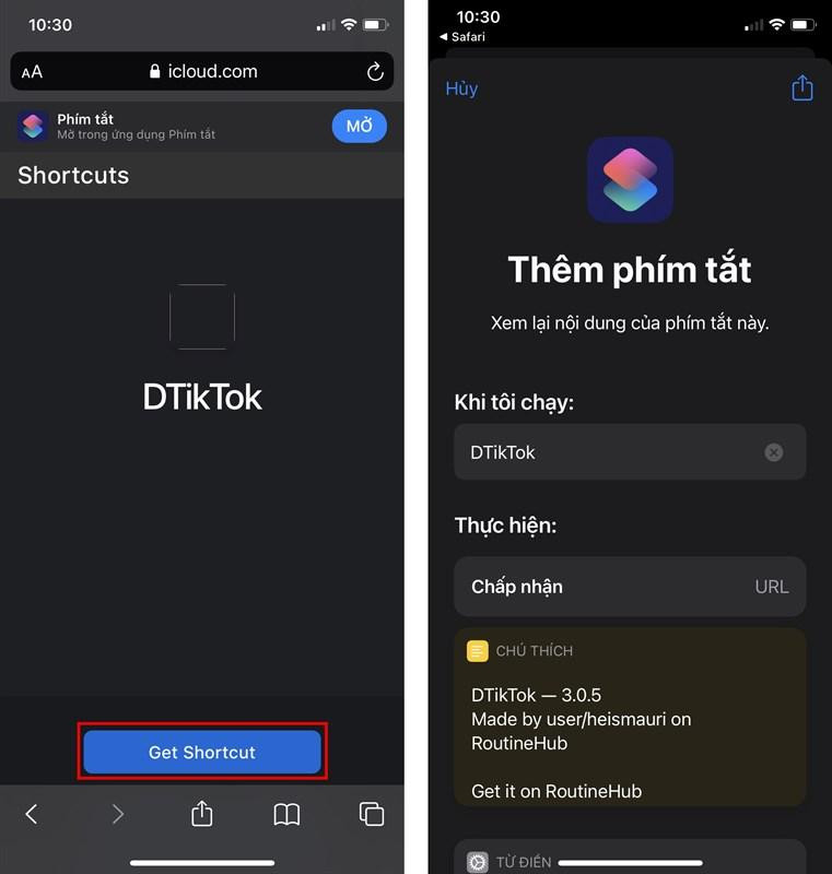 Bước 1: Bạn nhấn vào link bên dưới để thêm phím tắt Download TikTok về máy.