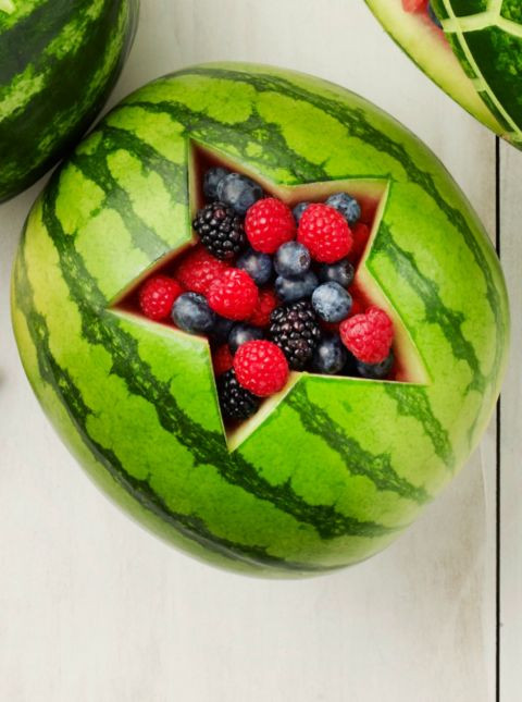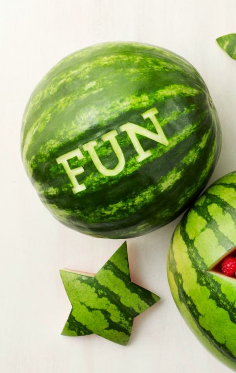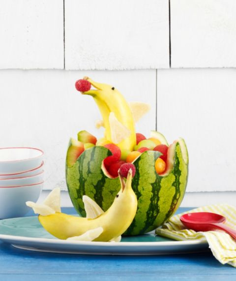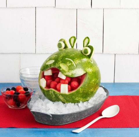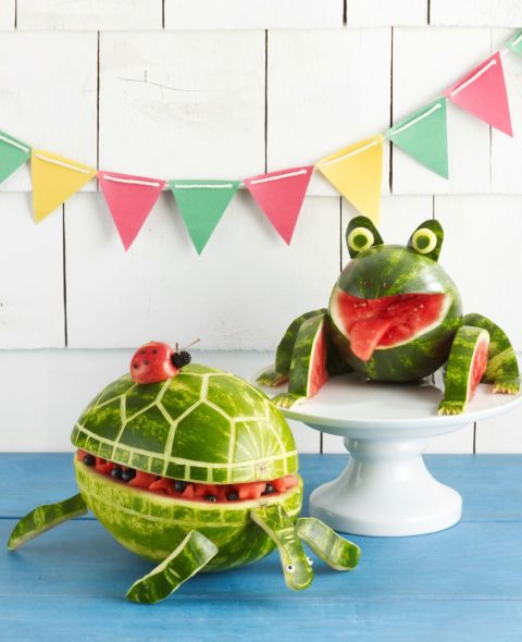 Dưa hấu vốn có hai màu xanh đỏ rất bắt mắt, việc bạn cần làm bây giờ chỉ là bớt chút thời gian trang trí, cắt gọt để tạo thành các hình thù sinh động cho bé thêm yêu món dưa hấu!