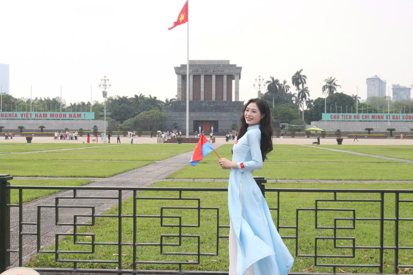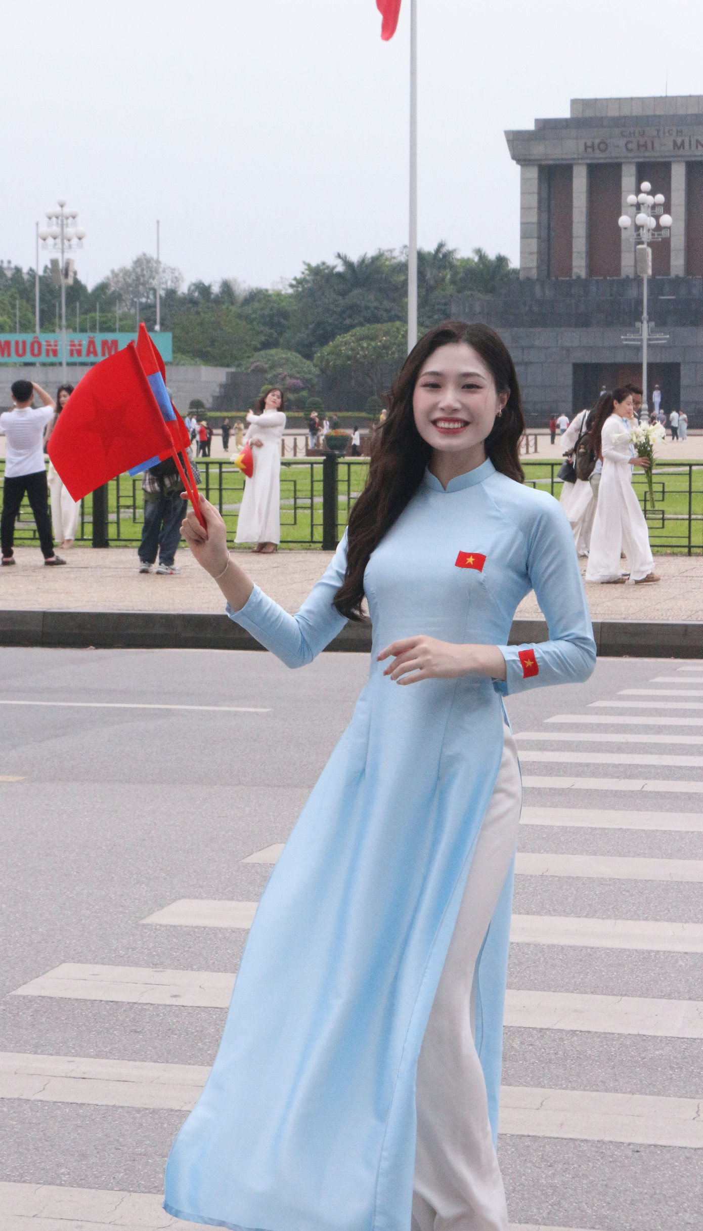 Bên cạnh việc chụp ảnh lưu niệm tại Lăng Bác, nhiều bạn trẻ còn sáng tạo những video clip xúc động, tái hiện ký ức thời chiến.
