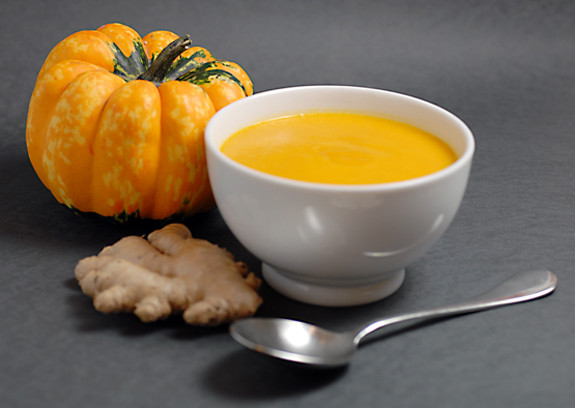 - Một bát súp rau củ, bí đỏ hoặc súp thịt heo hành hoa với vài lát gừng sẽ là thức ăn giúp giải cảm cực hiệu quả.