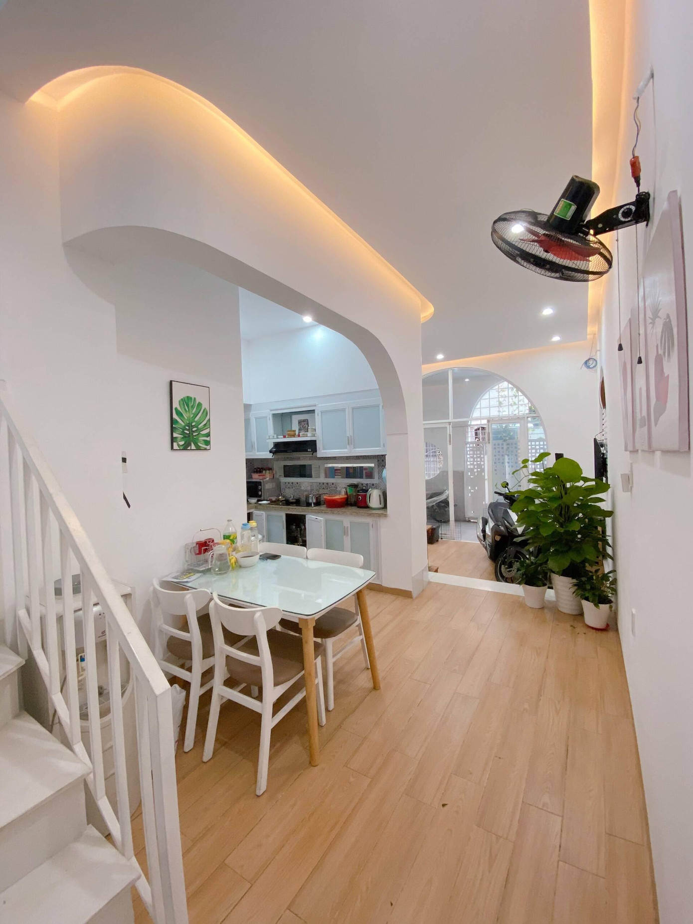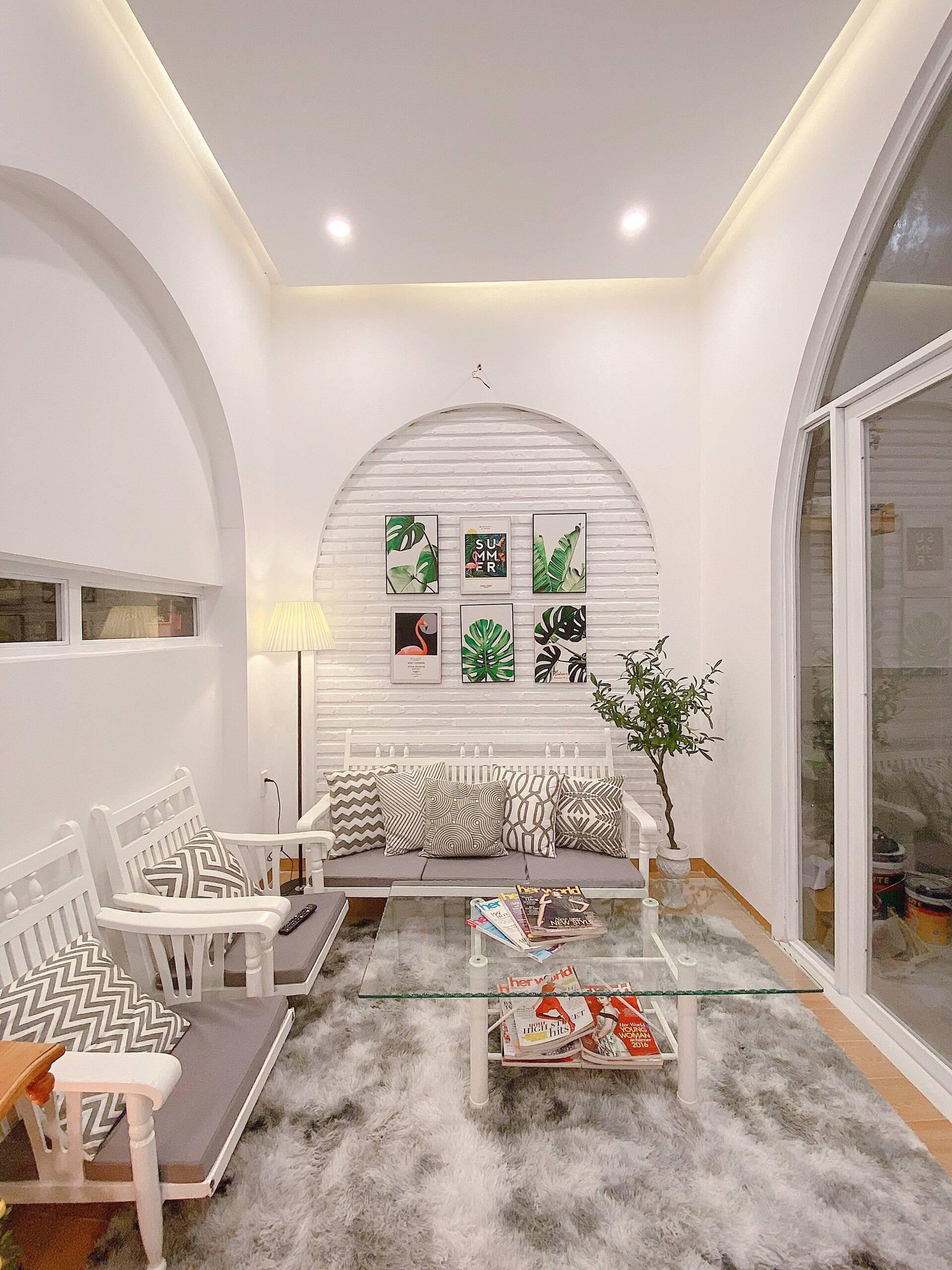 | Cả ngôi nhà đều lấy tông màu trắng làm chủ đạo, kết hợp với hệ cửa vòm để có những đường cong mềm mại. |