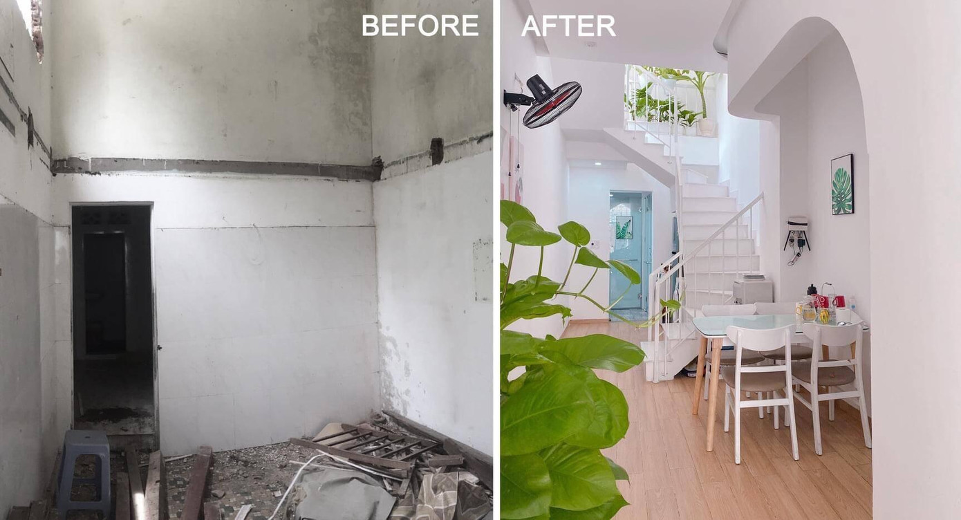| Từ mảnh đất có ngôi nhà cấp 4 cũ kỹ, trên 30 năm tuổi, đã xuống cấp nằm trong hẻm nhỏ ở Đà Nẵng với chiều ngang chỉ 1,5m; một gia chủ làm kiến trúc sư (KTS) đã lên ý tưởng xây ngôi nhà 3 tầng từ nhà cấp 4 với ngân sách có hạn. |