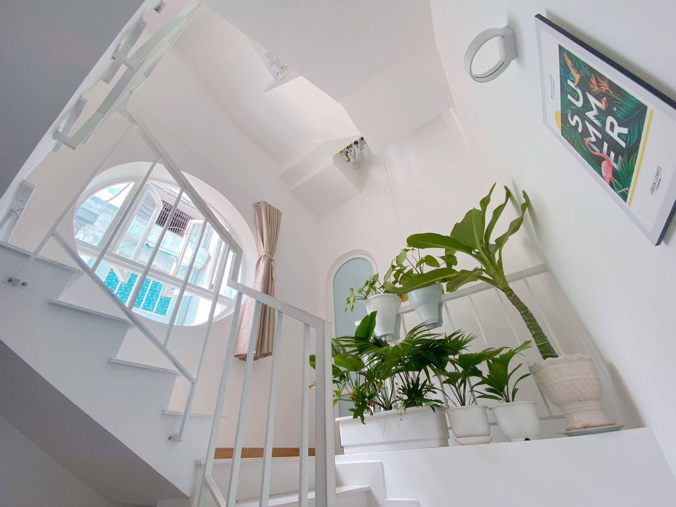| Cầu thang nhỏ nhưng được thiết kế nhiều cửa sổ, là nơi để những bạn trẻ thuê phòng có thể ngồi ngắm cảnh hoặc chụp ảnh. |