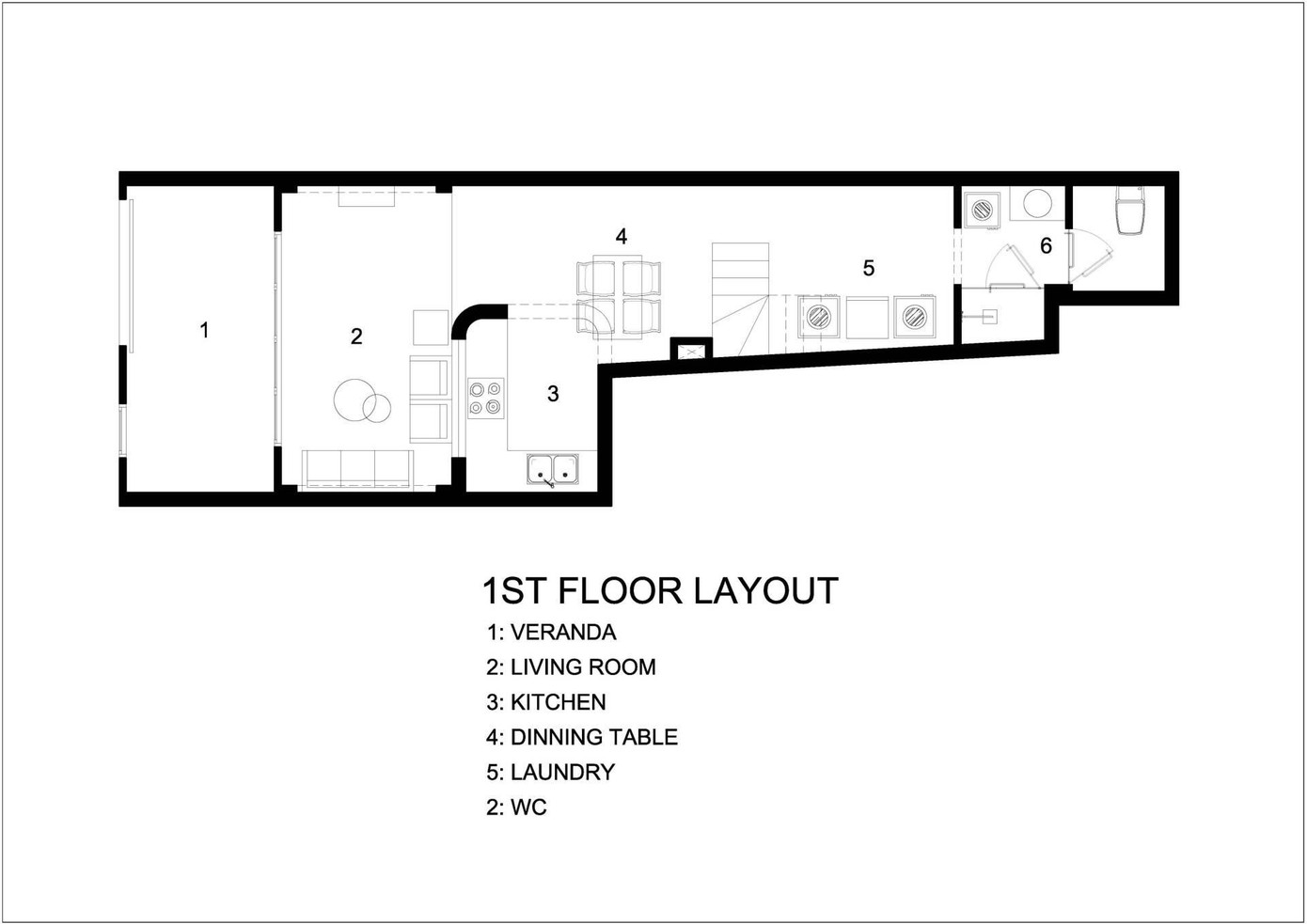 | Khó khăn lớn nhất của ngôi nhà là lọt phải thế “đầu voi đuôi chuột” (phần hậu hẹp hơn phần đầu) nên KTS phải phân bổ công năng trong nhà một cách hợp lý và đáp ứng những yêu cầu về phong thuỷ. |