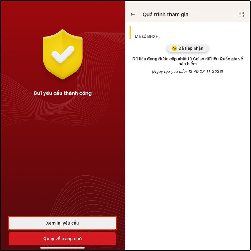 Bước 3: Sau khi gửi yêu cầu thành công, bạn hãy bấm chọn xem lại yêu cầu để kiểm tra xem yêu cầu của bạn đã được tiếp nhận thành công hay chưa.