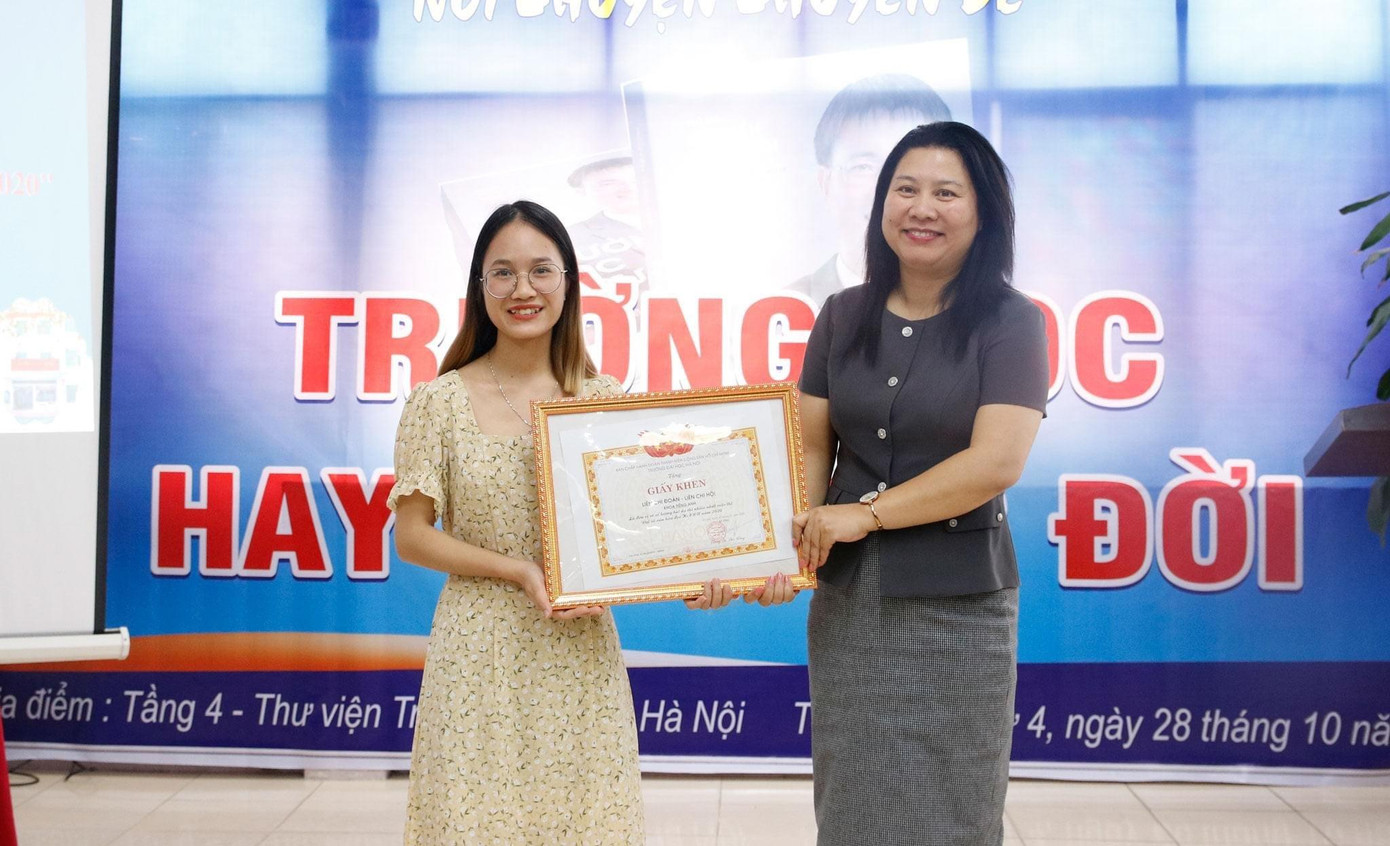 | Nguyên cùng các bạn nhận chứng chỉ tại Hội nghị Bạn đọc 2021. |