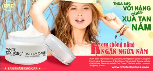Lưu ý : Trong suốt quá trình điều trị nám da bắt buộc dùng kem chống nắng trị nám White Doctors vào ban ngày, che chắn kỹ và cẩn thận khi ra nắng.