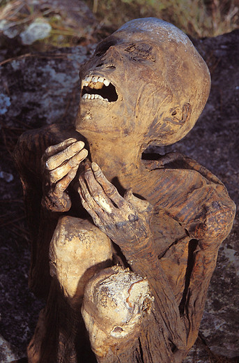Người ta ước tính rằng toàn bộ quá trình ướp xác có thể mất vài tuần, có khi vài tháng. Sau đó, họ được chôn cất trong các hang động.