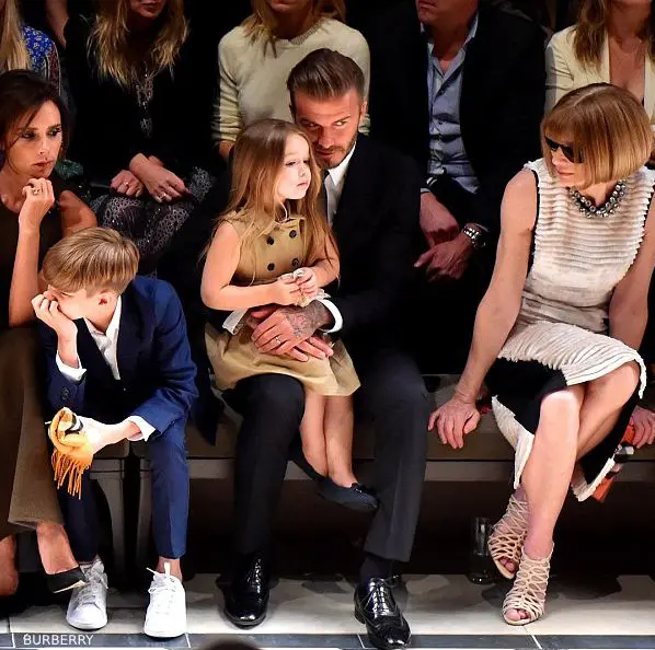 Còn Harper ngồi hàng ghế đầu với tâm thế hớn hở đúng như trẻ con được đi tham quan. Vic muốn để con bắt đầu khám phá, giữ nguyên sự háo hức muốn tìm hiểu cho bé chứ không muốn Harper đóng vai trò gây chú ý cho show, hay làm hài lòng thị hiếu ngắm trẻ con ăn mặc sành điệu của bất kỳ khán giả nào.
