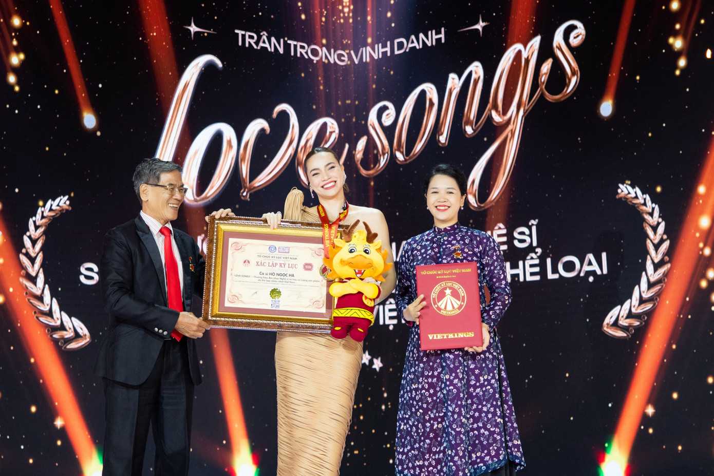 Đặc biệt, cả ê kíp đã dành một bất ngờ lớn cho Hồ Ngọc Hà, khi cô được công bố xác lập kỷ lục bởi Trung ương Hội Kỷ lục gia Việt Nam - Tổ chức Kỷ lục Việt Nam - Vietkings. Hồ Ngọc Hà và ê kíp nhận kỷ lục “Thương hiệu âm nhạc nghệ sĩ sở hữu số lượng sản phẩm đa thể loại nhiều nhất Việt Nam” dành cho Love songs.